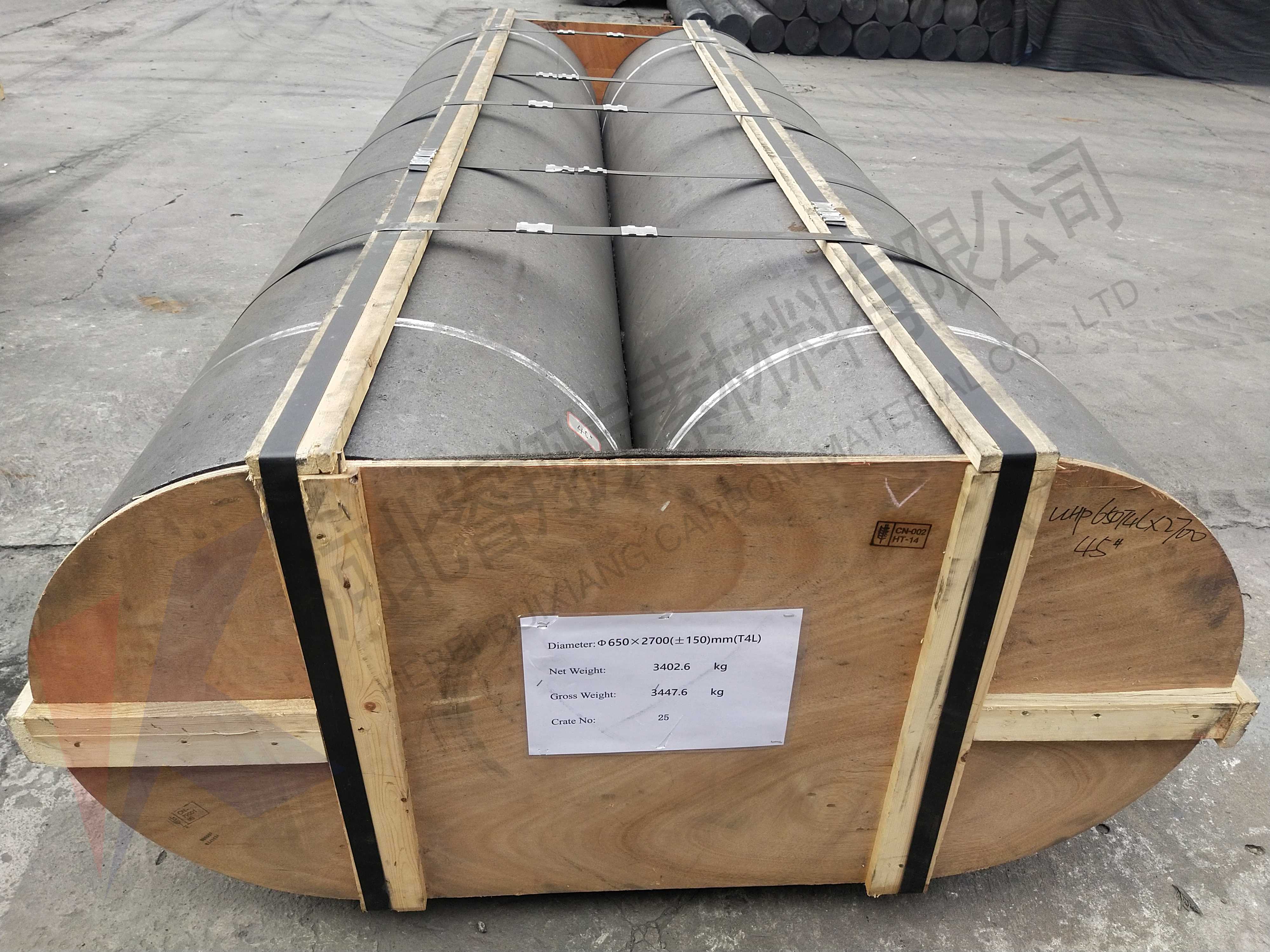 The weight of the UHP650*2700mm graphite electrode attached to the nipple is about 1688kg. 40HQ containers are used for maritime transport. Each container can hold a maximum of 16 UHP650*2700mm graphite electrodes. ruixiang UHP650 graphite electrode is a kind of high-end graphite electrode, which is mainly used in the production of furnaces and electric arc furnaces in the steel and metal processing industries. Compared with other graphite electrodes, UHP650 has higher conductivity, lower resistivity and higher wear resistance. In addition, the UHP650 graphite electrode also has good oxidation resistance and high temperature stability, and can operate stably in a high temperature environment. In summary, the UHP650 graphite electrode is a high-quality, high-performance electrode suitable for the production of high-quality steel and metal products.